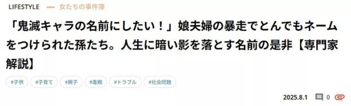 说起来大家小时候有没有幻想过给自己起个“酷炫”的艺名?但幻想归幻想,现实生活中真有人把这种“中二病式命名”贯彻到极致,还是直接用在自己亲生骨肉身上——你敢信,有日本父母给女儿取名“堕姬”?